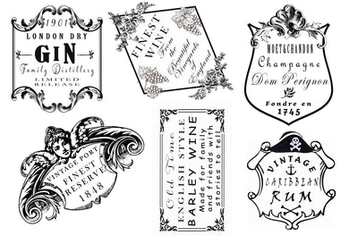 Wines And Spirits Labels Stamp Set - A4 Size - Moody Mare Design