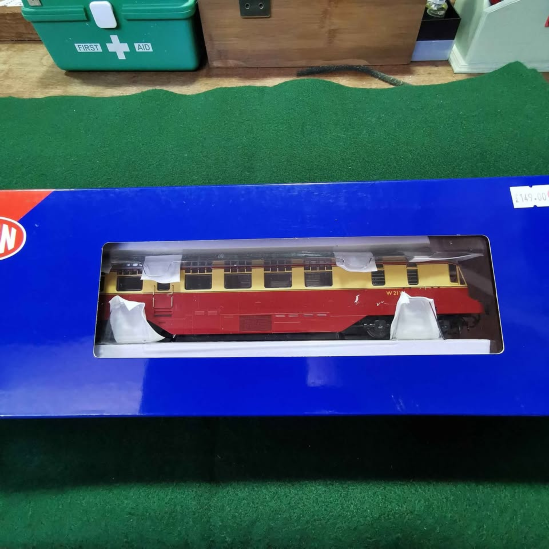 Experience the precision of the Heljan BR Crimson/Cream Diesel Railcar in OO gauge, featuring a blood and custard livery with a contrasting grey roof. This DCC-ready model (21-pin) is equipped with directional lighting, sprung buffers, and detailed crew and passengers, ensuring authenticity. Renowned for its smooth and reliable performance at all speeds and directions, it offers an exceptional running experience for discerning collectors and model railway enthusiasts.