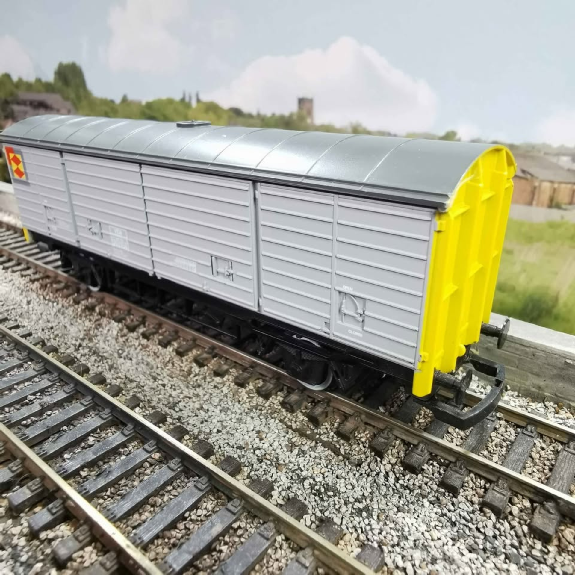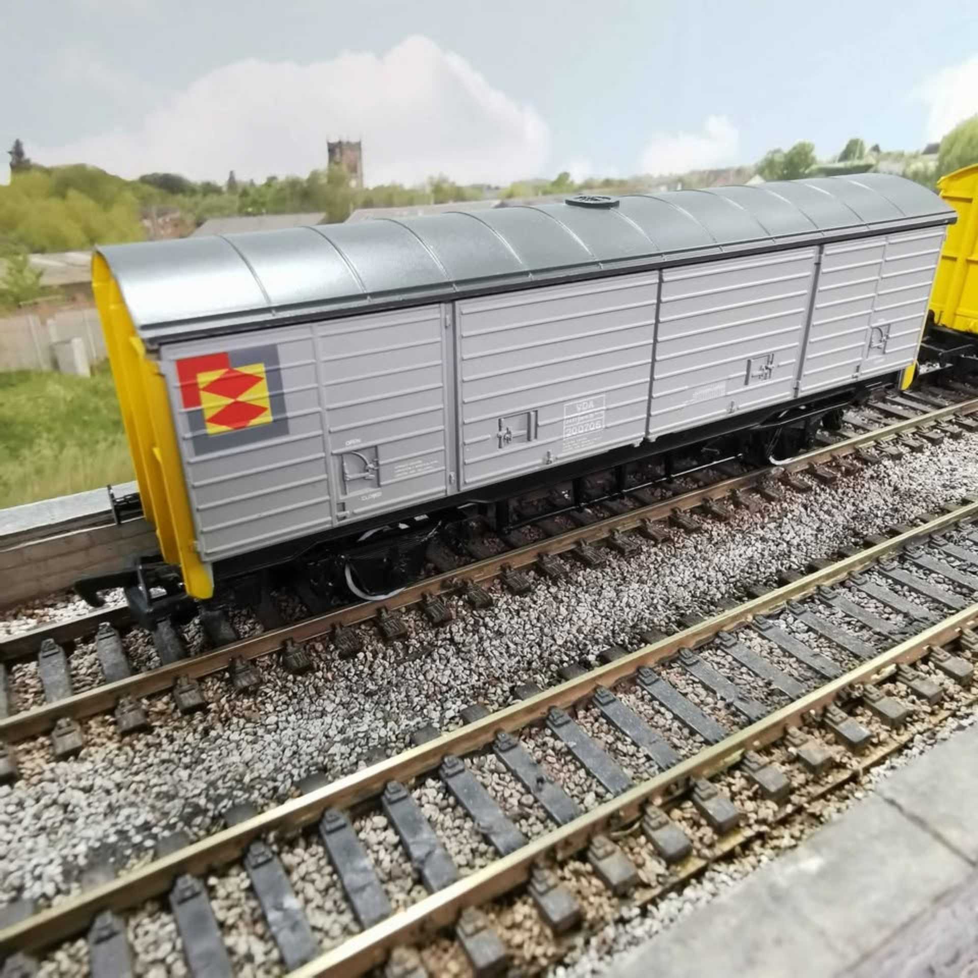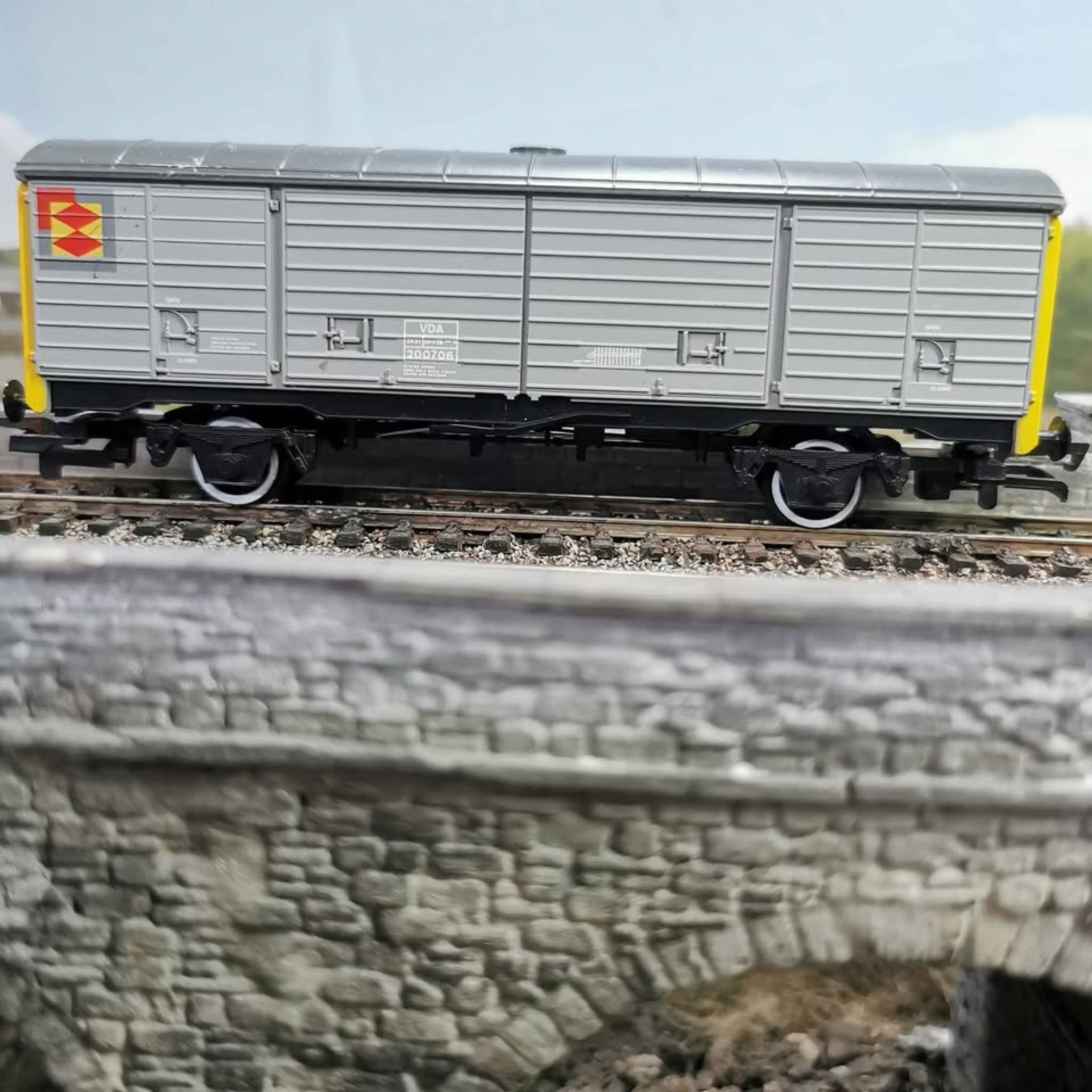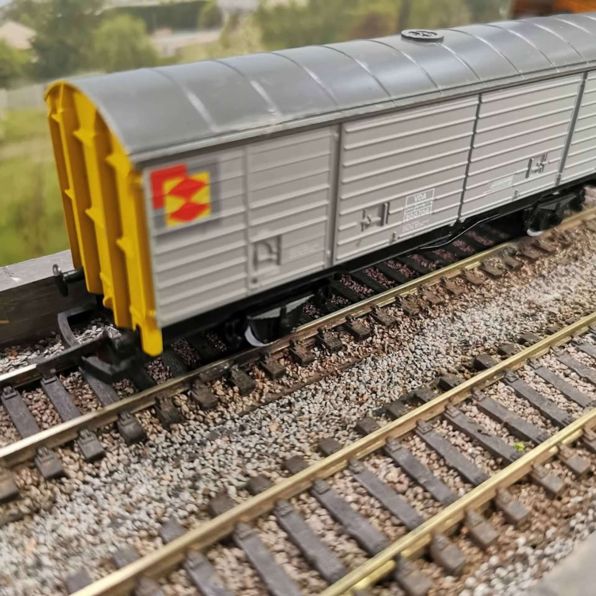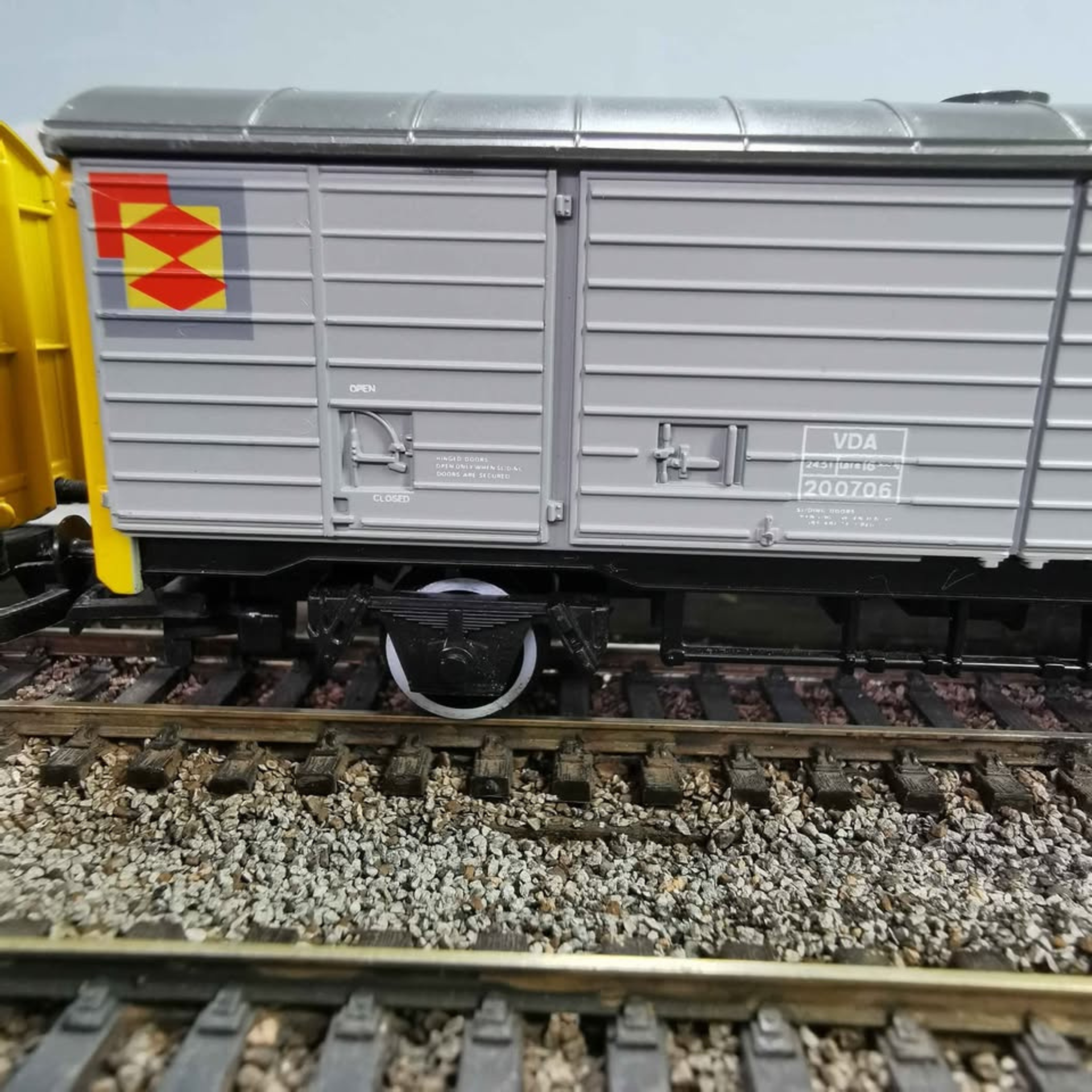 These Hornby 45-ton VDA closed vans in Railfreight livery, built to OO gauge, make a refined addition to any model railway. Offered at £12 each, a set of three is available for purchase. All vans are in very good pre-used condition with intact buffers, though one van is missing a hook on its coupling. Original packaging is not included. You may select a quantity of one, two, or three to suit your collection needs.
