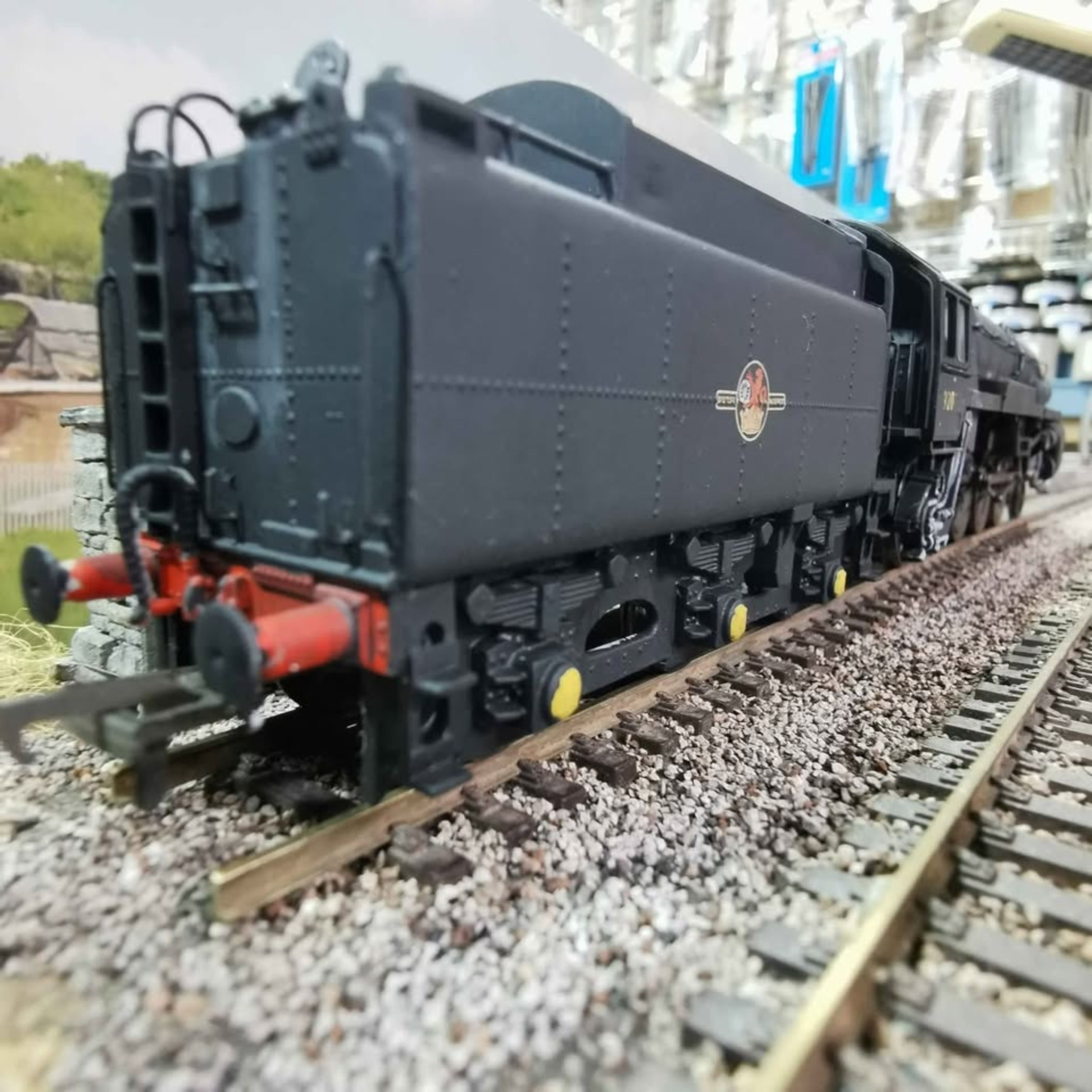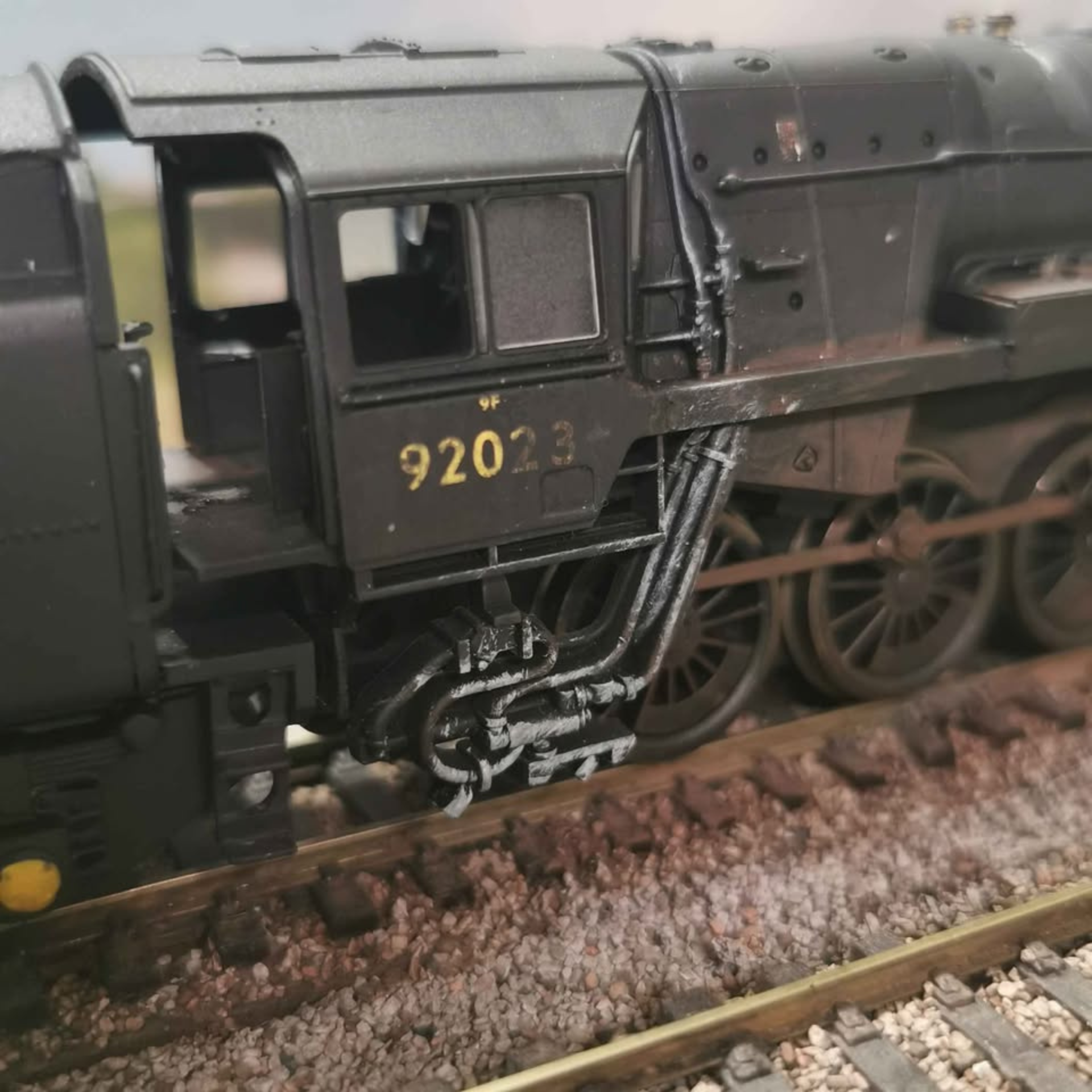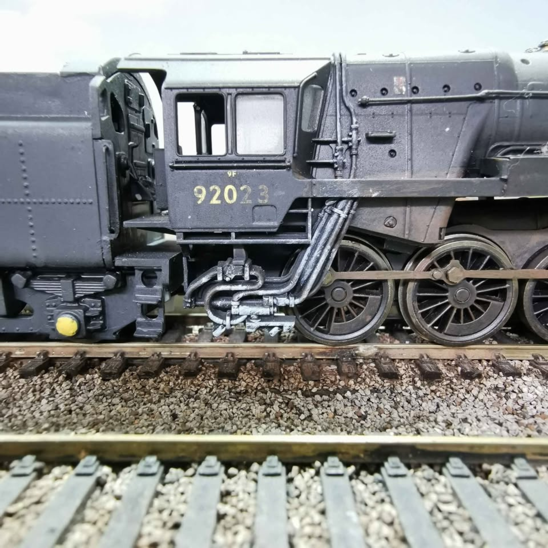 This meticulously rebuilt Hornby Late BR Class 9F locomotive, No. 92023, features a new tender and comprehensive repainting with expert weathering and detailing. Designed with the distinctive Crosti Boiler and late BR crest, this OO gauge model is DCC ready for seamless control. All buffers and couplings are intact, ensuring smooth operation, and it performs flawlessly at all speeds in both directions. A superb choice for discerning collectors seeking an authentic and fully tested addition to their layout.