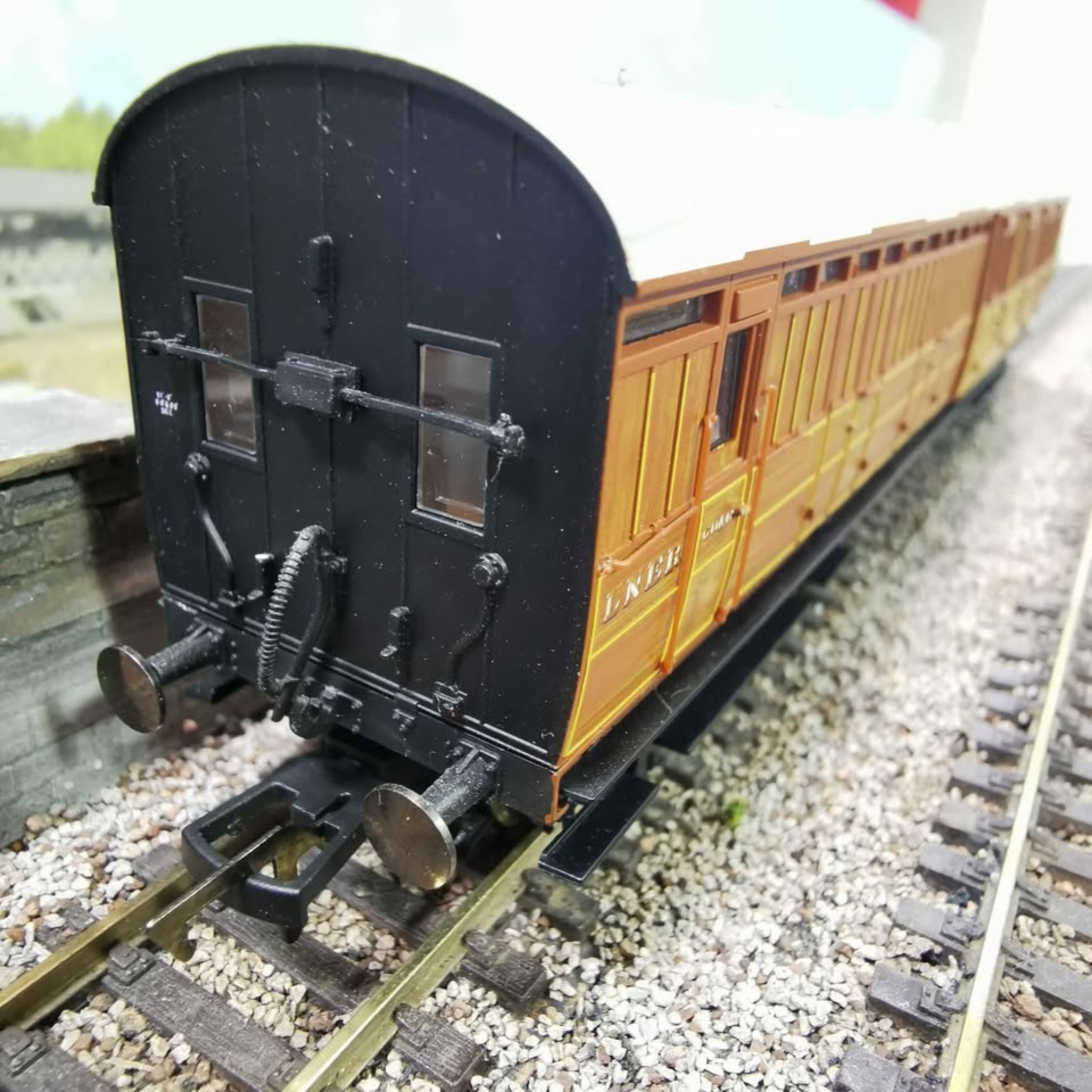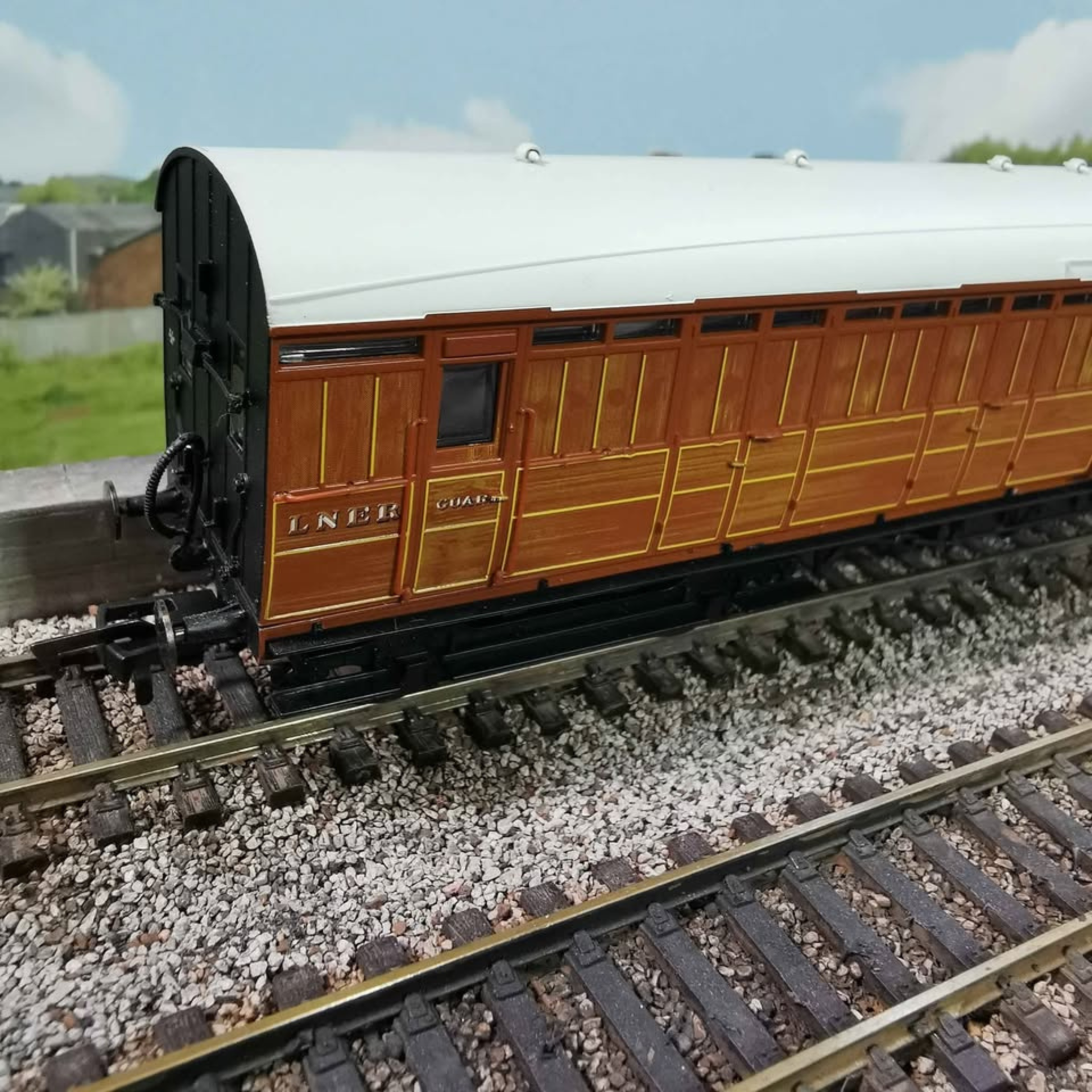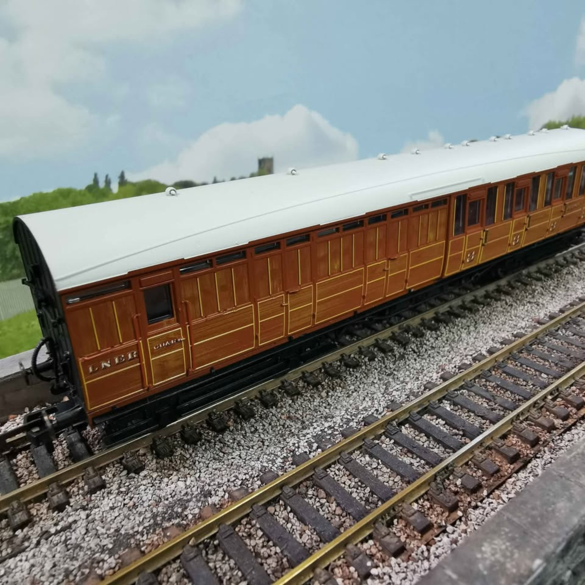 The Hornby LNER Gresley Suburban 3rd Class Brake Coach No. 22313, presented in pristine condition, showcases detailed craftsmanship with NEM couplings, metal wheels, and sprung buffers. This OO Gauge model offers both authenticity and durability, making it an excellent addition to any discerning collector's layout. The packaging shows minor creasing but remains largely intact, preserving its overall presentation.