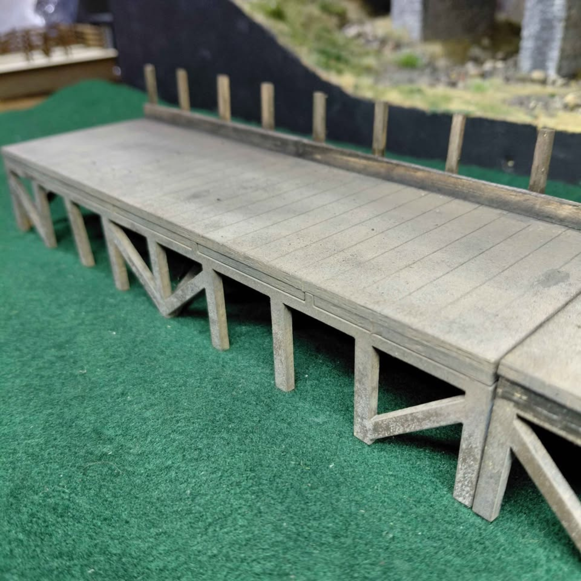 This O gauge coaling stage exemplifies authentic railway heritage with its weathered finish and laser-cut construction. Measuring 46cm in length and 8cm in depth, the platform provides substantial presence within any layout whilst maintaining elegant proportions. The piece includes a coalman figure and period-appropriate implements, bringing narrative depth and operational authenticity to your scene. Every surface and detail reflects the industrial character of a working coal facility. An exceptional choice for discerning modellers seeking to establish atmospheric, historically accurate railway infrastructure.